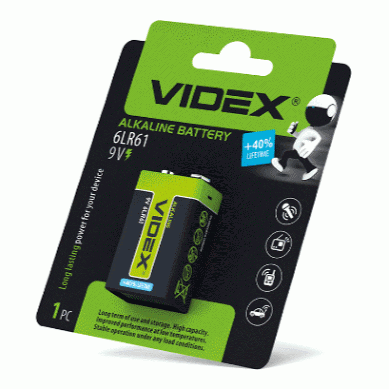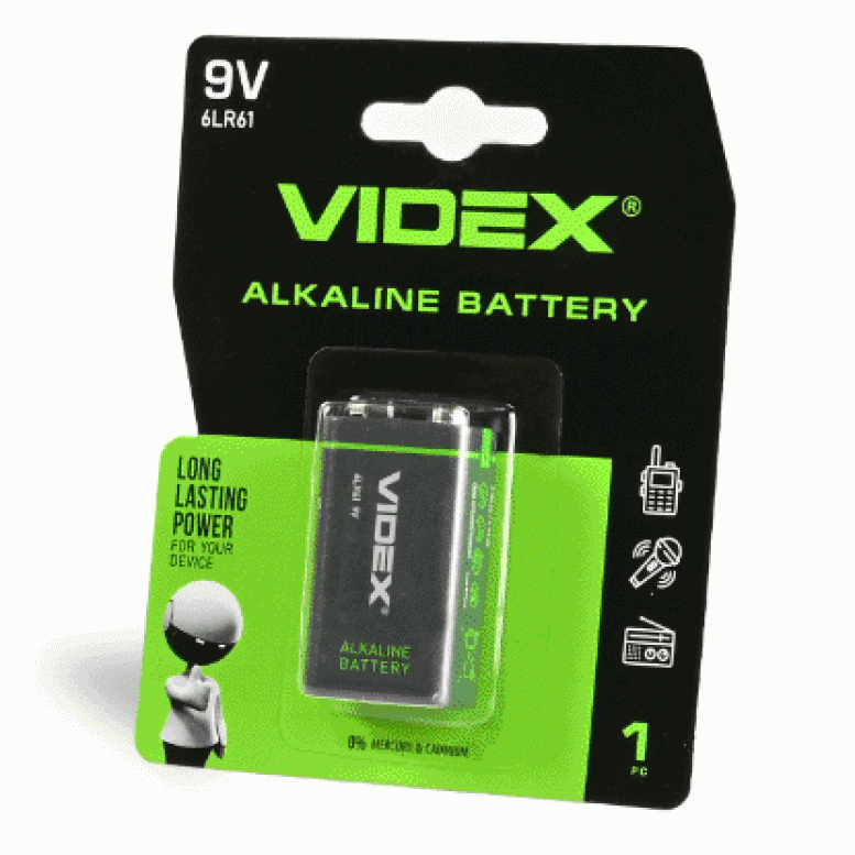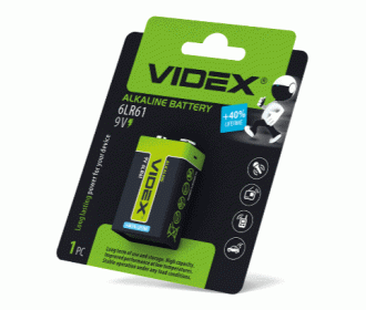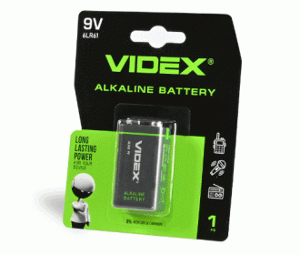 - Батарейка щелочная Videx 6LR61/9V (Крона) 1шт BLISTER