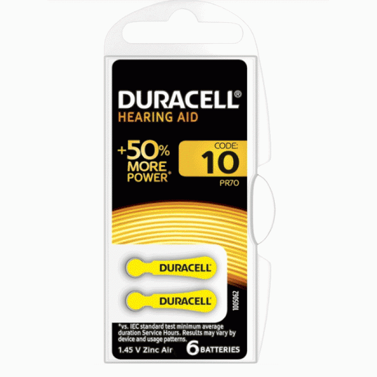 Услышьте все благодаря длительному сроку службы специальных батареек для слуховых аппаратов Duracell Hearing Aid размера 10 с Easy;