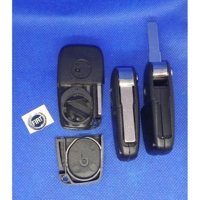 Корпус выкидного ключа Fiat, 3 кнопки, лезвие SIP22, батарейка сзади, черный /D/СУПЕР КАЧЕСТВО С ЛОГОТИПОМ !