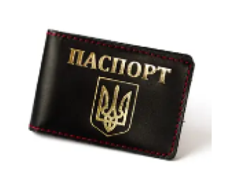 Обкладинка для ID-паспорта "Паспорт+Герб України"чорна з позолотою,червона нитка, (300030)