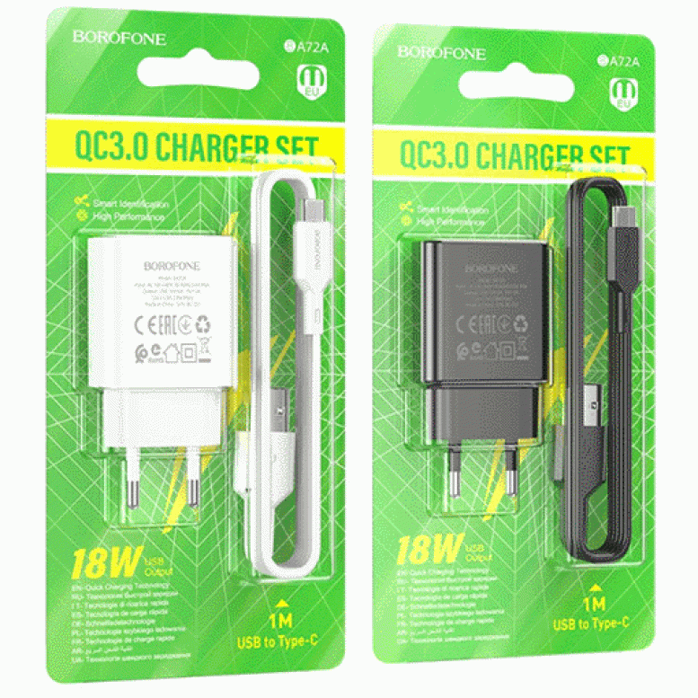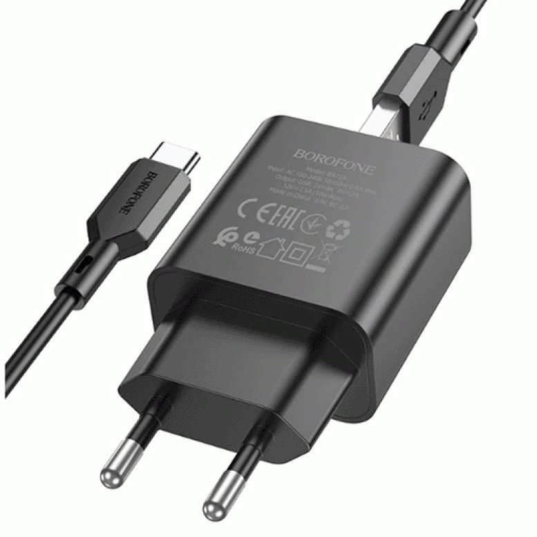 Сетевое зарядное устройство для Borofone BA72A/QC3.0 с кабелем Type-C.
