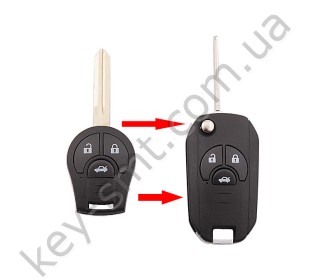 Корпус выкидного ключа Nissan Juke, Qashqai и другие, 3 кнопки, лезвие NSN14, под переделку /D