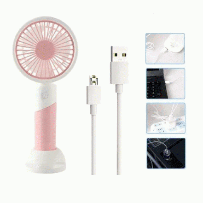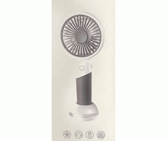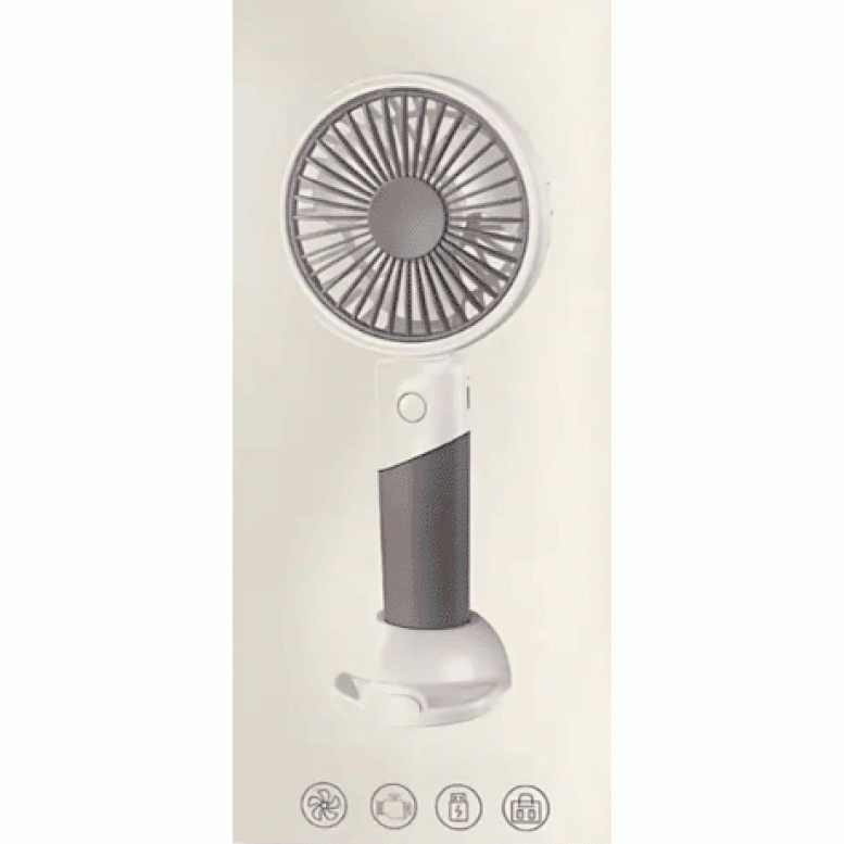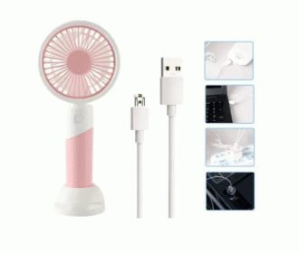 Портативный ручной вентилятор будет однозначно Вашим спасением в жару.Мини-вентилятор имеет компактную форму, благодаря чему Вы сможете взять его в дорогу, на прогулку, в поезд, на обучение, на работу, в офис. Компактный вентилятор легко поместится в сумочку или рюкзак, имеет три режима скорости обдува. Благодаря удобному дизайну рукоятки его можно использовать в качестве портативного или настольного вентилятора, чтобы удовлетворить Ваши потребности в эксплуатации. Для стационарного использования на рабочем месте предусмотрена специальная стильная подставка с держателем под мобильный телефон. Работает это устройство от аккумулятора, который можно заряжать непосредственно через специальный разъем в корпусе устройства с помощью кабеля с разъемом USB для подключения к источнику питания (в комплекте). Источником питания может быть Power Bank, ноутбук или электросеть. Время полной зарядки около 4 часов. Вентилятор изготовлен из пластикового материала и снабжен защитной решеткой для безопасности. Он имеет три пластиковых лопасти, при этом обеспечивает эффективное охлаждение.